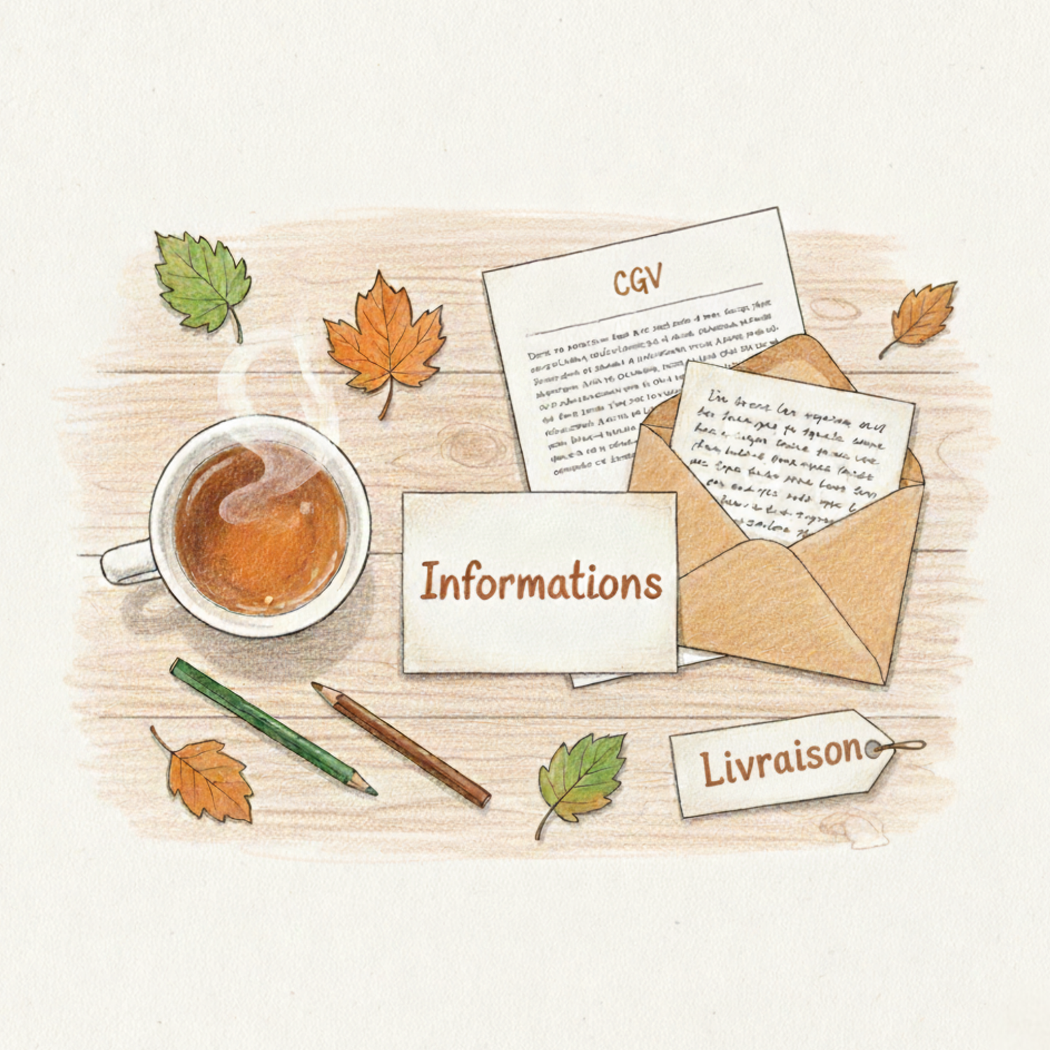 La créatrice ne pourra être tenue responsable des retards liés aux transporteurs ni des erreurs imputables au client lors de la saisie des informations de livraison.