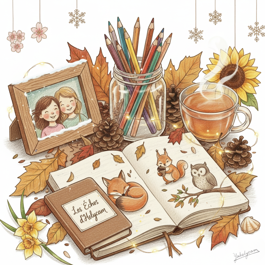 Les Échos d’Helycam, c’est un endroit où je rassemble mes portraits personnalisés, mes affiches, mes calendriers d’activités pour enfants et des créations inspirées de l’automne, de Noël et de la magie du quotidien. Chaque commande est préparée avec soin, avec ce même désir de transmettre chaleur, poésie et émotions.